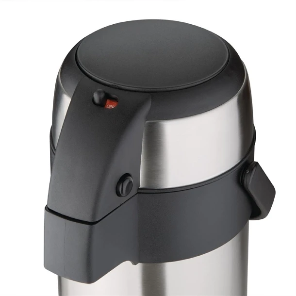 Provide hot drinks at outdoor events with this pump action airpot by Olympia. The stainless-steel outer and inner create an excellent insulation and guarantee that customers get boiling hot beverages. Featuring a safety lock and swing carry handle, this airpot is designed for easy usage indoors or out.