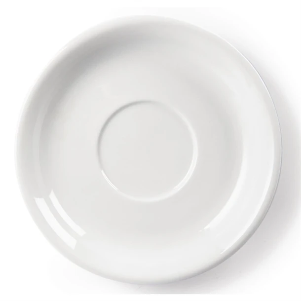 A pure white cappuccino saucer from Olympia, designed to fit the 412ml cappuccino cup U827, which provides a great value and hardwearing porcelain crockery solution for busy hotels, canteens, casual dining restaurants and cafés. Strengthened rolled edges ensure the coffee cup saucer is chip resistant and a fully vitrified body gives great glaze durability, making it ideal to withstand the rigours of the professional catering environment. The saucer is stackable, helping maximise storage space, and is oven, microwave, dishwasher and freezer proof. This item is guaranteed by the Nisbets Edge Chip Warranty.